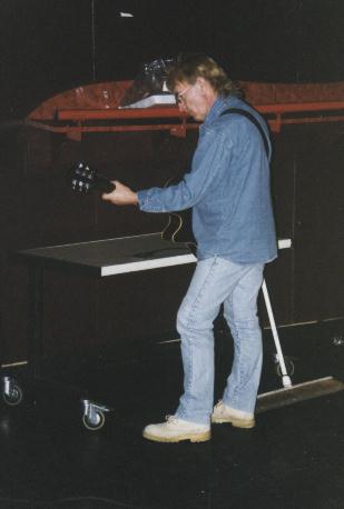 John tuning his guitar